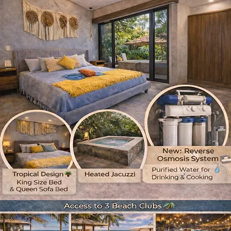 The 1-room "Tropical Vibe" - Jet Tub - Filtered Water - 2 Free Beach Clubs Tulum apartment is located in Tulum, around a 10-minute drive from the Mixik, and pampers guests with a Jacuzzi. The apartment lies in the Zona Hotelera district, 3.4 km from the national park "Parque Nacional de Tulum".